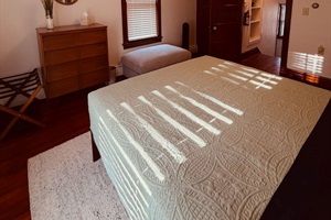 Primary Bedroom: Queen bed with twin trundle, soft linens, and natural light