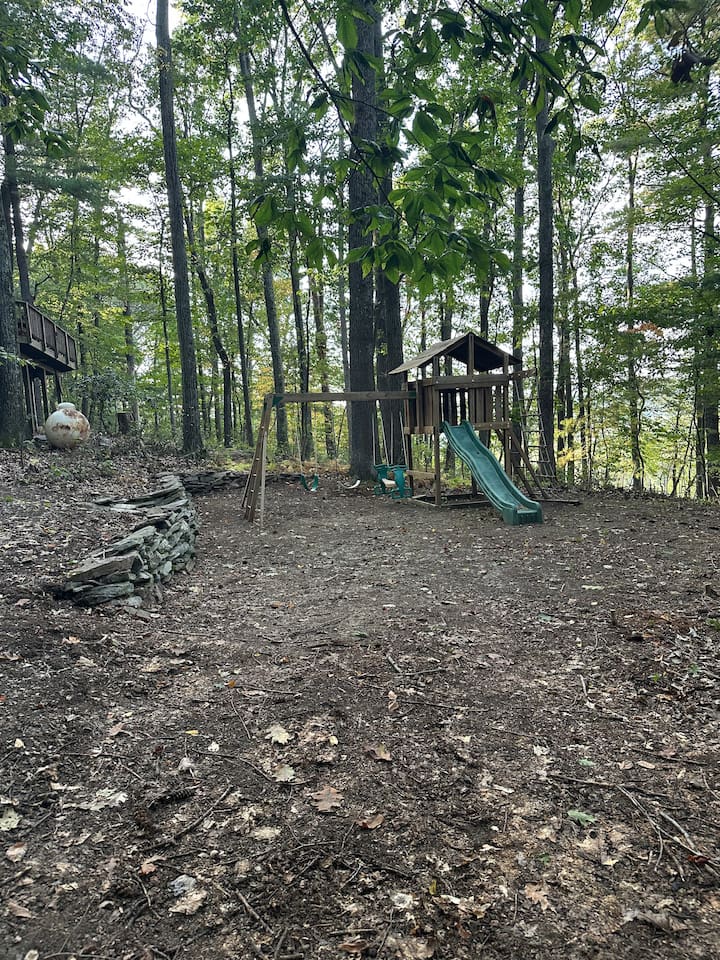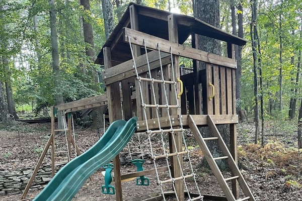 Nestled among mature trees, the property offers a peaceful woodland vibe plus a charming children’s play area—ideal for families to relax while the kids explore and enjoy nature.